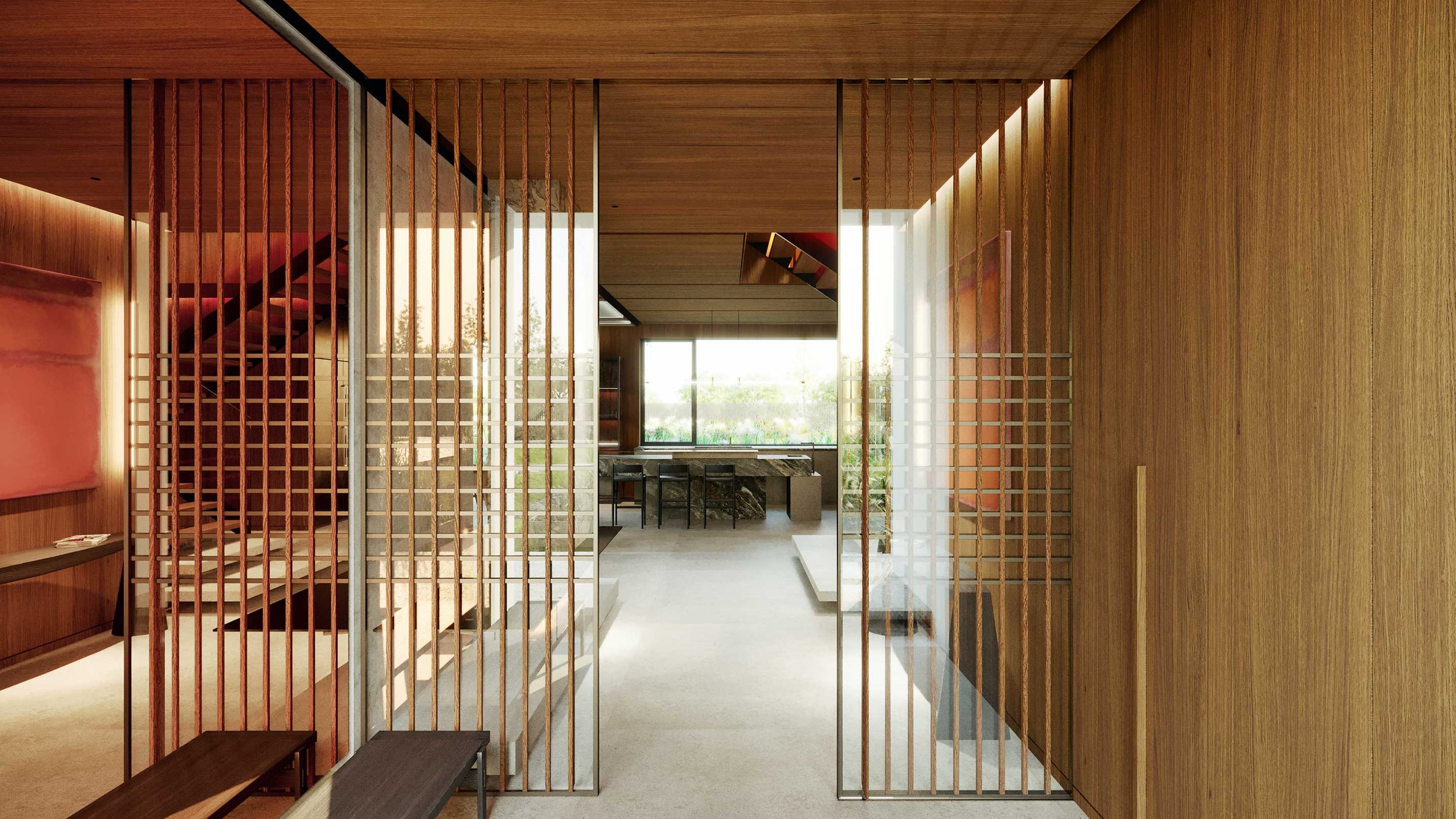 Details throughout are deliberately minimal yet impeccably precise. Every junction and alignment has been thoughtfully considered and meticulously coordinated to promote a seamless flow of space, enhancing both form and function.
